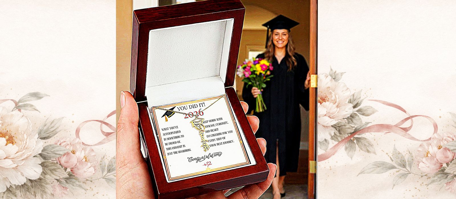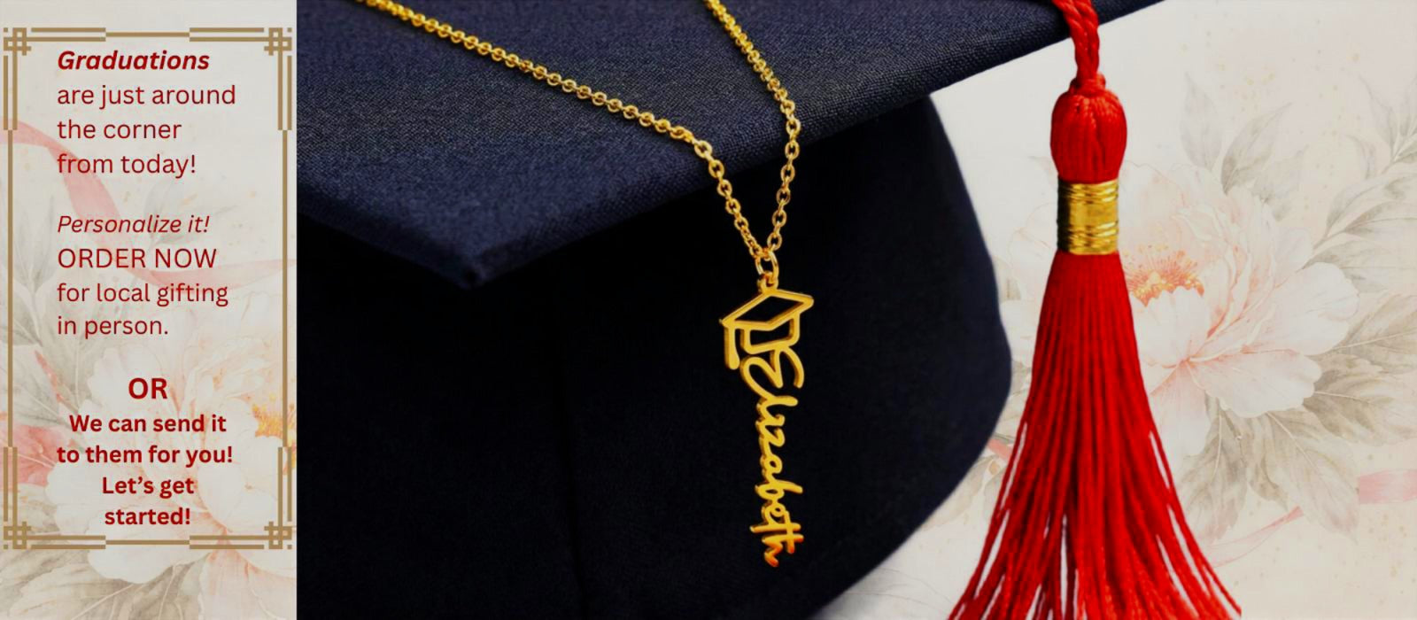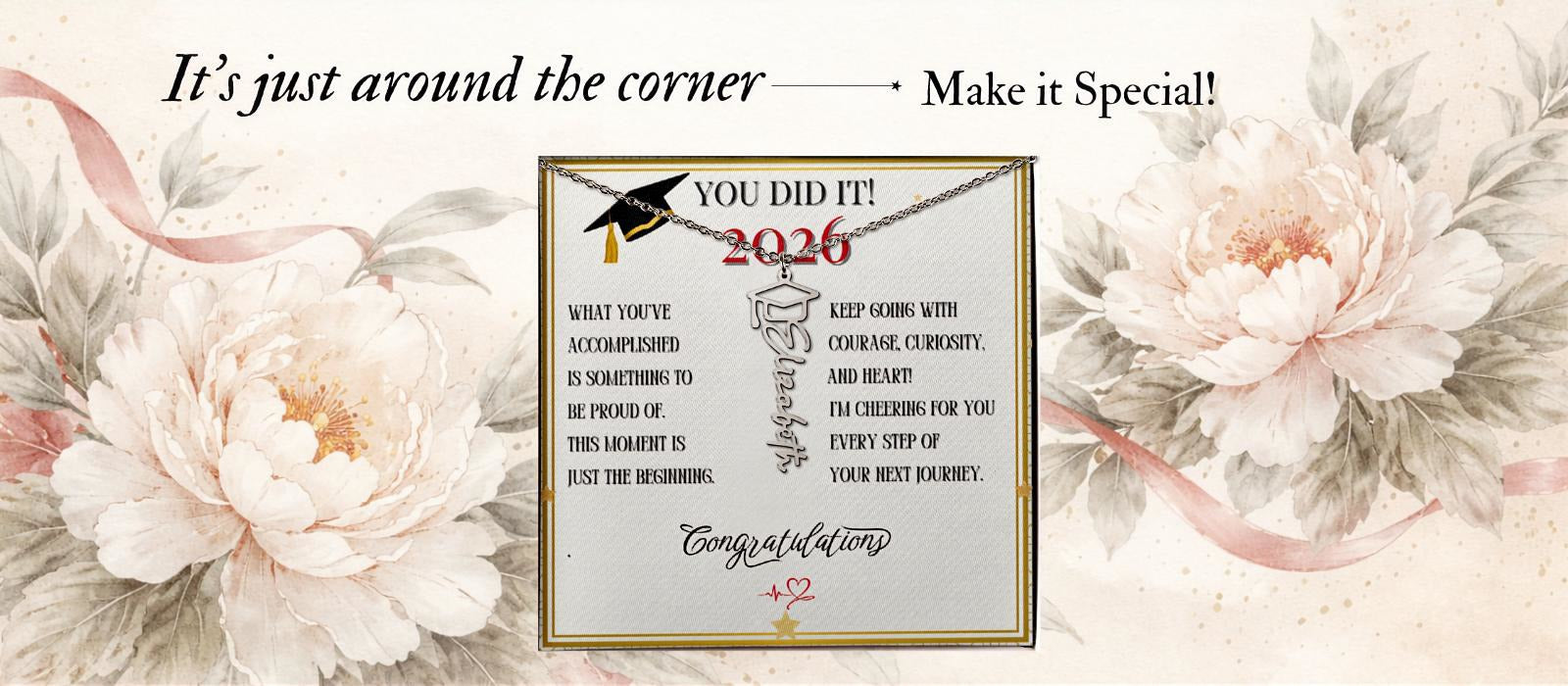 Now is the best time to design your graduate's graduation hug. Let us personalize the special day keepsake with our Grad Love Name Necklace!